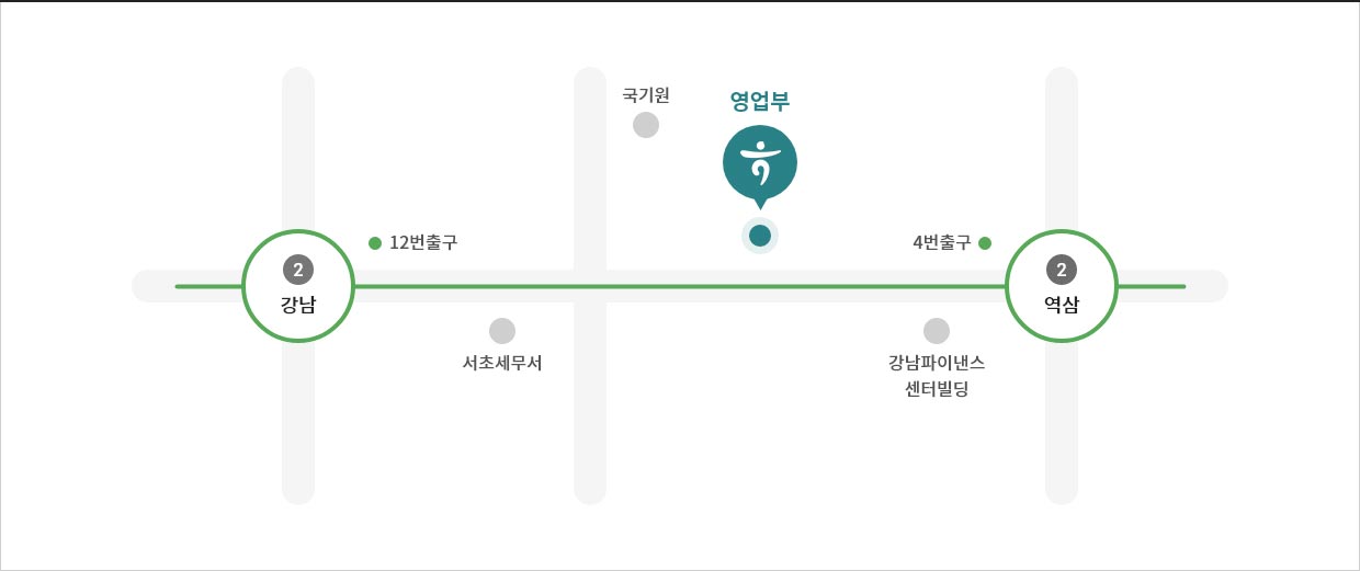 - 지하철 2호선 강남역 12번 출구 또는 역삼역 4번 출구에서 직진하여 200m 직진(도보 5분)